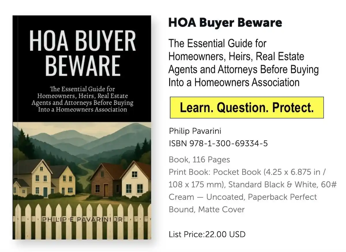 The author wrote this guide after ten years of personal experience, legal conflict, and extensive research into HOA rules, rights, and abuses. This is not just a personal story. It is a practical handbook filled with checklists, insights, and action steps for buyers, fiduciaries, and professionals.